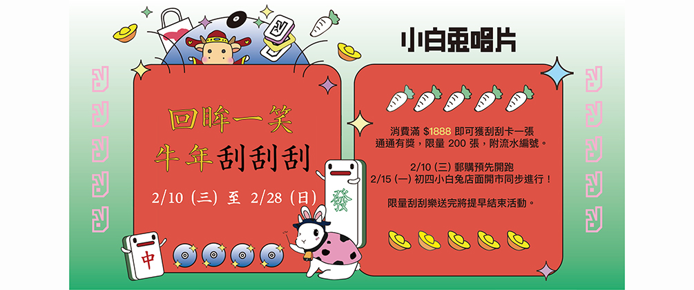「小白兔新春活動」回眸一笑,牛年刮刮刮