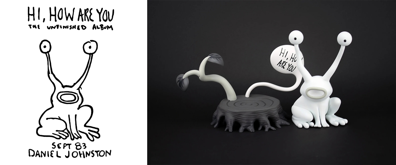 Jeremiah the Innocent Frog is one of Daniel Johnston most legendary characters. Most recognized on the cover of his sixth self-released cassette, “Hi, How Are You, The Unfinished Album”, recorded in September of 1983. This licensed collaboration between the Daniel Johnston Group and Clutter features the quintessential album art on the back of the sculpture.